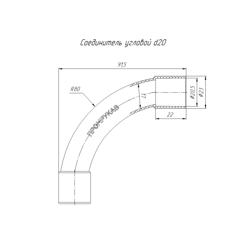Соединитель угловой 90град. d20мм безгалогенный (HF) атмосферостойкий сер. Промрукав PR13.0357