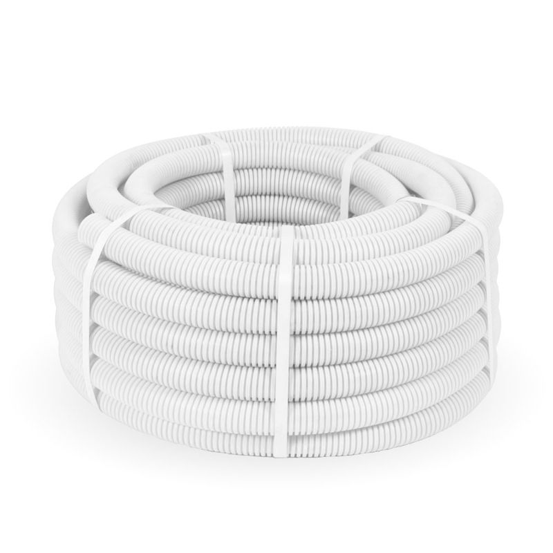 Труба гофрированная ПЛЛ легкая d32мм с протяжкой безгалоген. (HF) (НГ) бел. (уп.25м) Промрукав PR02.0217