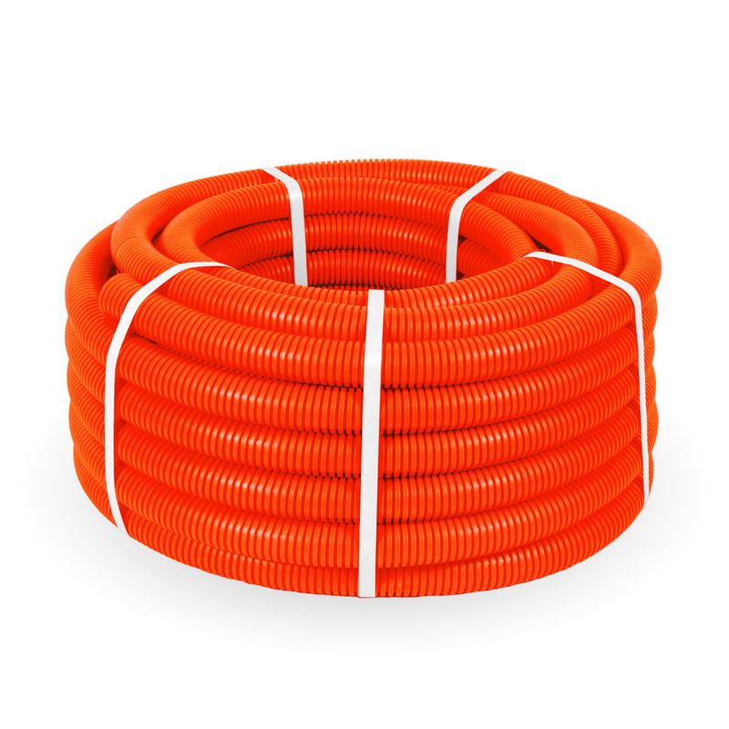 Труба гофрированная ПНД тяжелая d32мм с протяжкой 750 Н безгалоген. (HF) оранж. (уп.25м) Промрукав PR.023241о