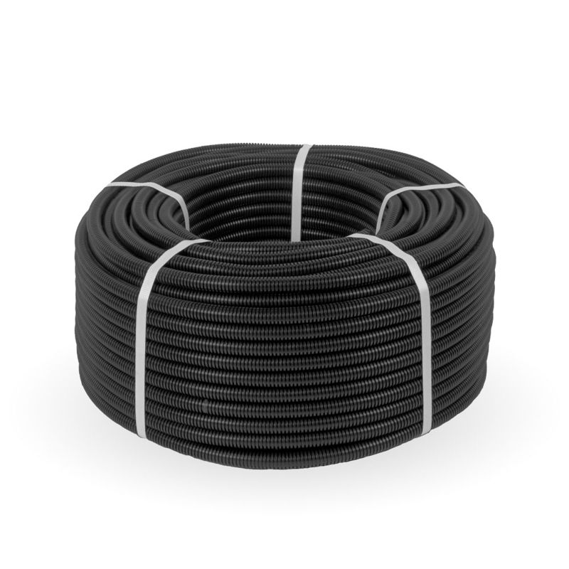 Труба гофрированная ПВХ легкая d16мм с протяжкой 350 Н черн. (уп.50м) Промрукав PR01.0054