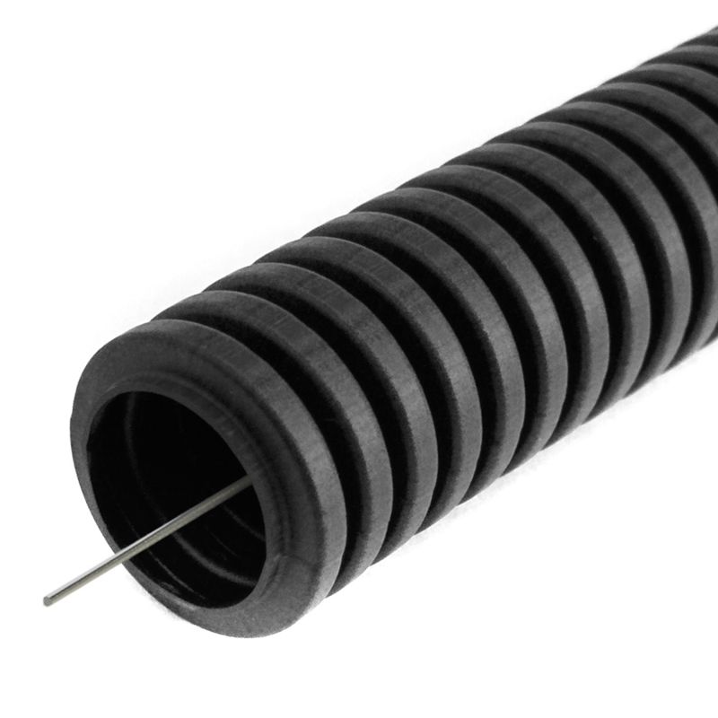 Труба гофрированная ПВХ легкая d20мм с протяжкой 350 Н черн. (уп.50м) Промрукав PR01.0056