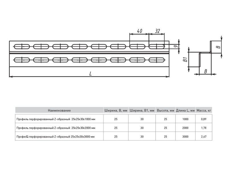 Профиль Z-образный перфорир. 25х30 L3000 2мм INOX EKF ppz2530-3-2-INOX