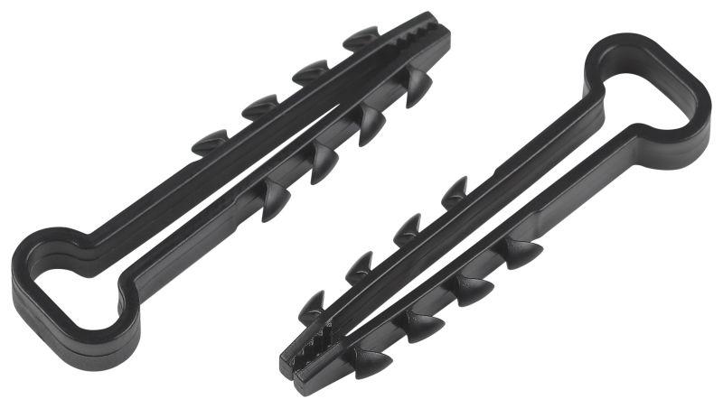 Установка дюбель-хомута довольно проста. Достаточно лишь просверлить отверстие, соответствующее диаметру дюбеля, затем надеть дюбель на провод и вставить в отверстие, приложив небольшое усилие. Зубчики, находящиеся на дюбеле, упираются в стенки отверстия и обеспечивают надежную фиксацию, не позволяя крепежу выскользнуть из него даже при значительных усилиях.