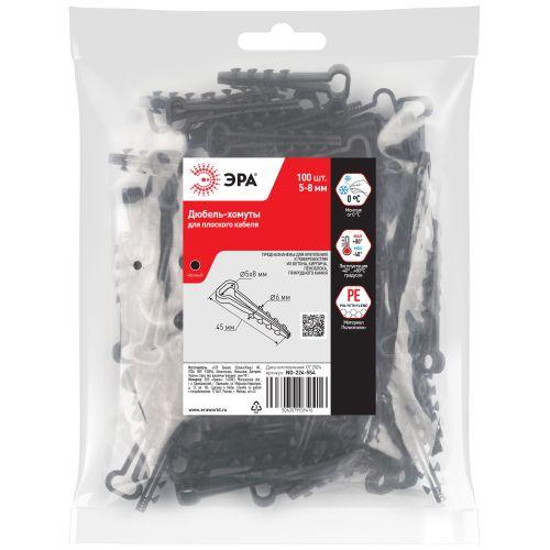 Дюбель-хомут 5-8мм для плоского кабеля NO-224-554 черн. (уп.100шт) Эра Б0066280