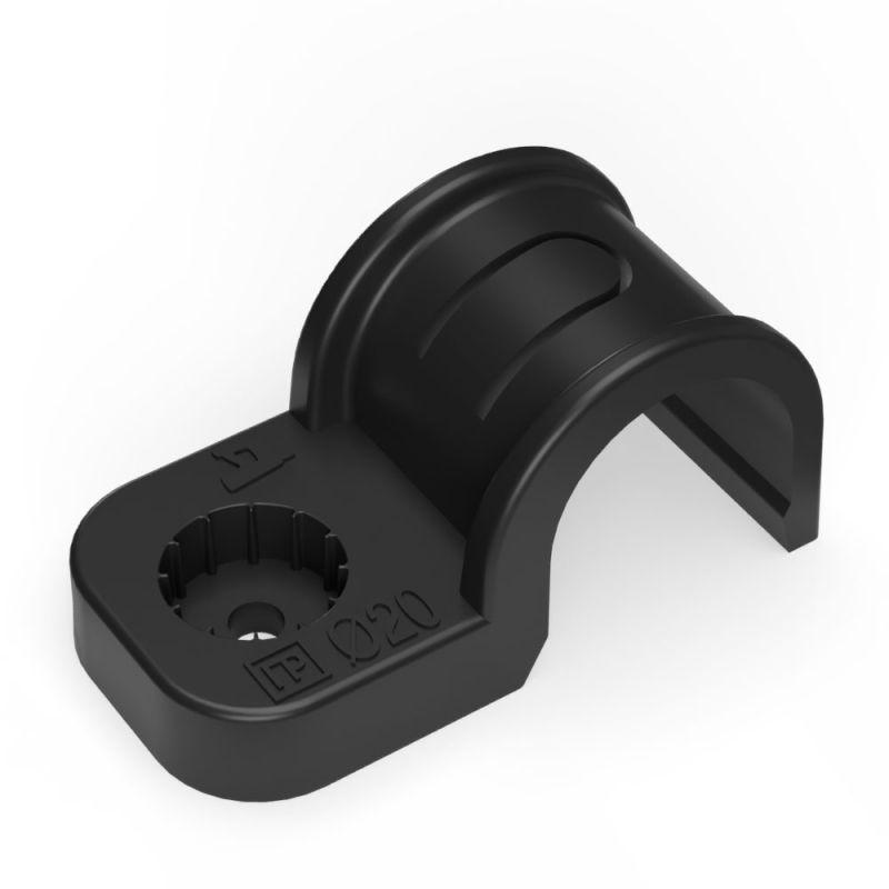 Крепеж-скоба односторонняя d20мм для прямого монтажа атмосф. пластик. черн. (уп.50шт) Промрукав PR13.0373
