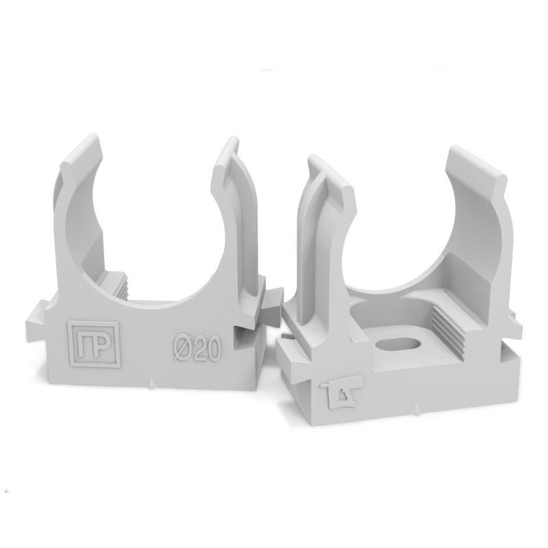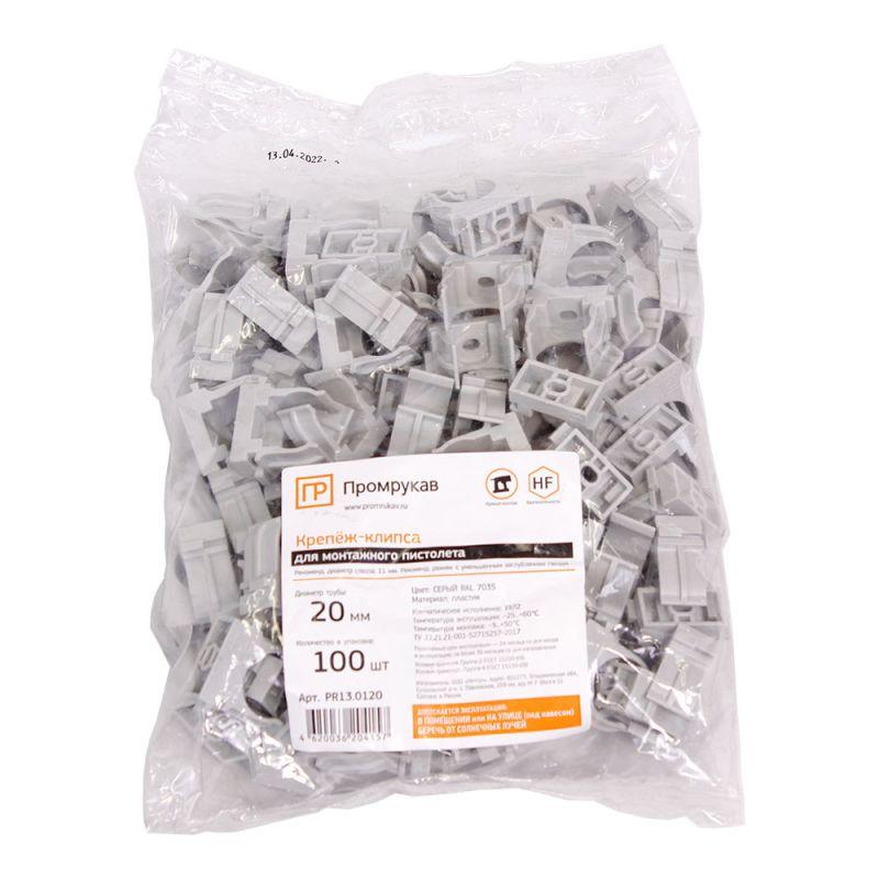 Держатель для труб (клипса) d20мм для монтажн. пистолета сер. в п/э Промрукав PR13.0120