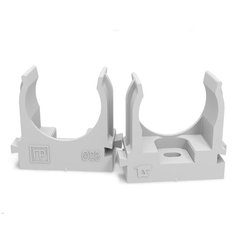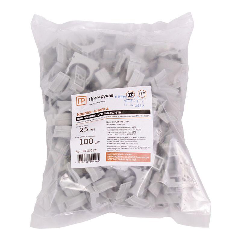 Держатель для труб (клипса) d25мм для монтажн. пистолета сер. в п/э Промрукав PR13.0121