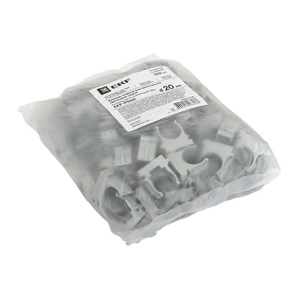 Держатель для труб (клипса) d20мм для монтажн. пистолета сер. (уп.100шт) Plast EKF derjp-z-20