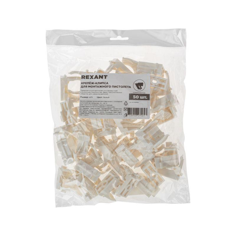 Держатель для труб (клипса) d25мм для монтажн. пистолета бел. Rexant 28-0425-3