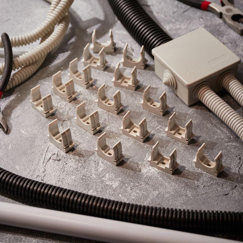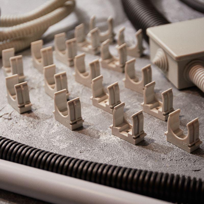 Изделие оснащено фиксаторами типа "шип-паз": при установке возможно соединять крепежи-клипсы различных диаметров.