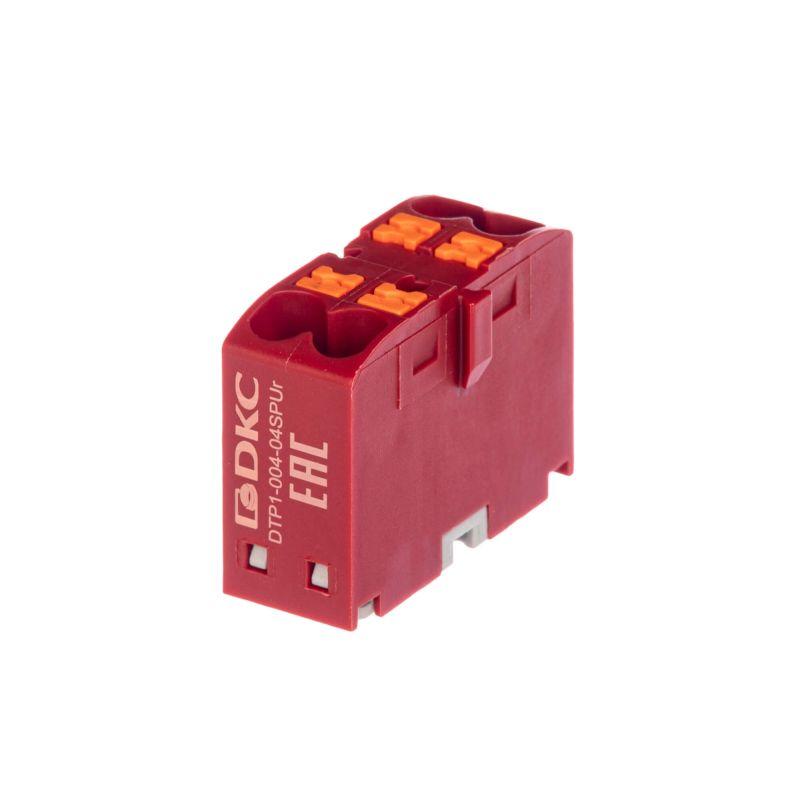 Блок распределительный зажим push-in 4 точки подключения 2.5кв.мм красн. DKC DTP1-004-04SPUR