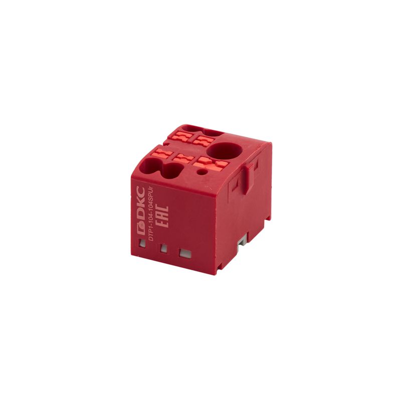 Блок распределительный зажим push-in 1 ввод 6кв.мм 4 точки подключения 25кв.мм красн. DKC DTP1-104-104SPUR