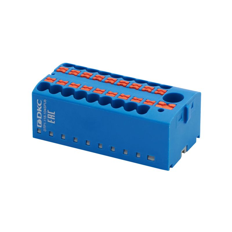Блок распределительный зажим push-in 1 ввод 6кв.мм 18 точек подключения 25кв.мм син. DKC DTP1-118-104SPUB