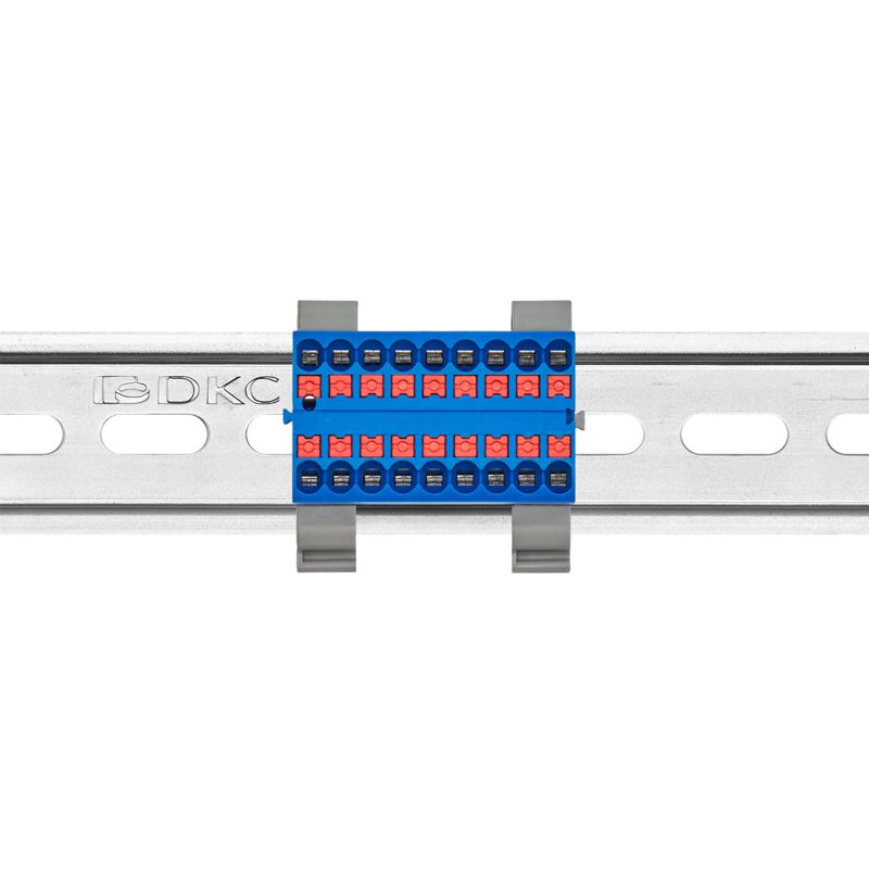 Блок распределительный с горизонт. адаптером на рейку шир. 35мм зажим push-in 18 точек подключения 2.5кв.мм син. DKC DTP1-018-04SPUB-H