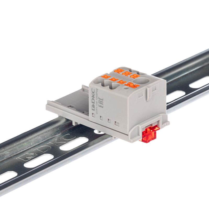 Блок распределительный с вертикал. адаптером на рейки шир. 15/35мм зажим push-in 1 ввод 6кв.мм 6 точек подключения 2.5кв.мм сер. DKC DTP1-106-104SPUG-V