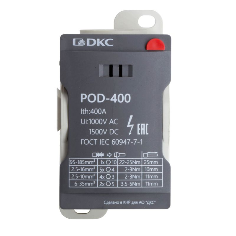 Блок распределительный винтовой зажим 1х185кв.мм 2х35кв.мм 5х16кв.мм 4х10кв.мм DKC POD-400