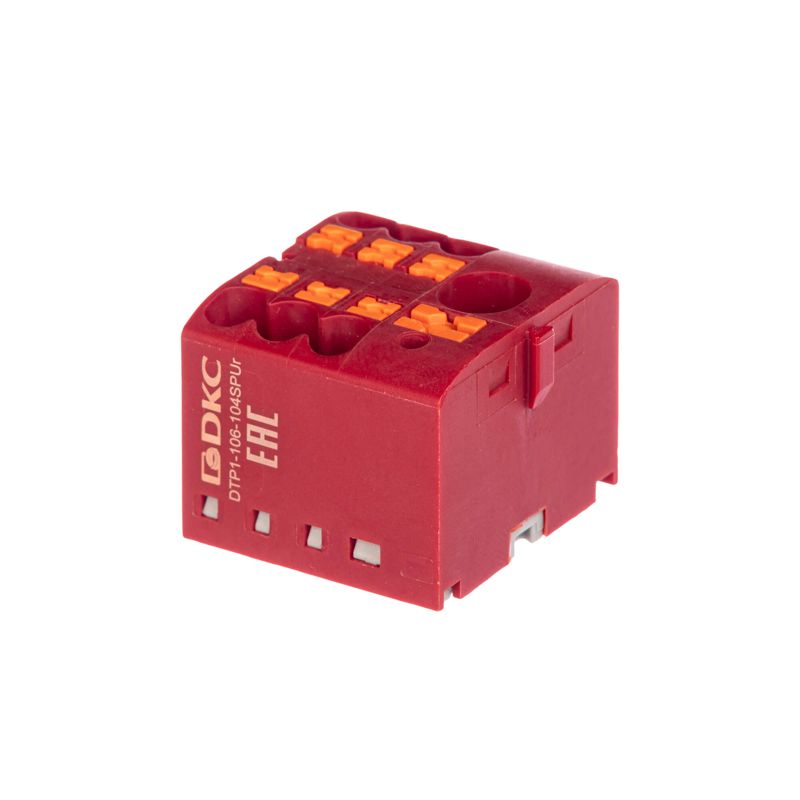 Блок распределительный зажим push-in 1 ввод 6кв.мм 6 точек подключения 2.5кв.мм красн. DKC DTP1-106-104SPUR