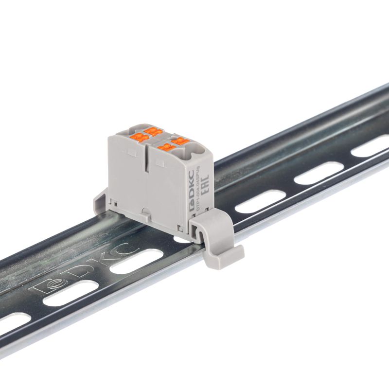 Блок распределительный зажим push-in 4 точки подключения 2.5кв.мм сер. DKC DTP1-004-04SPUG