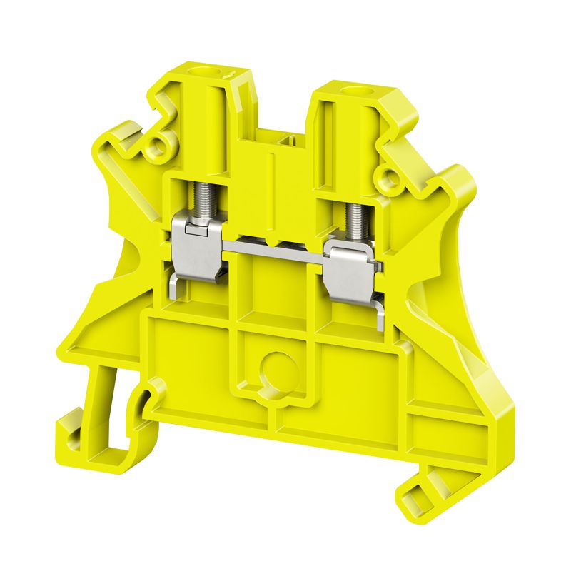 Желтый цвет, 2 точки подключения, 4 мм2. 2 канала для вставных перемычек. Габариты (В?Ш?Г) 47,5?53?6,2 мм.