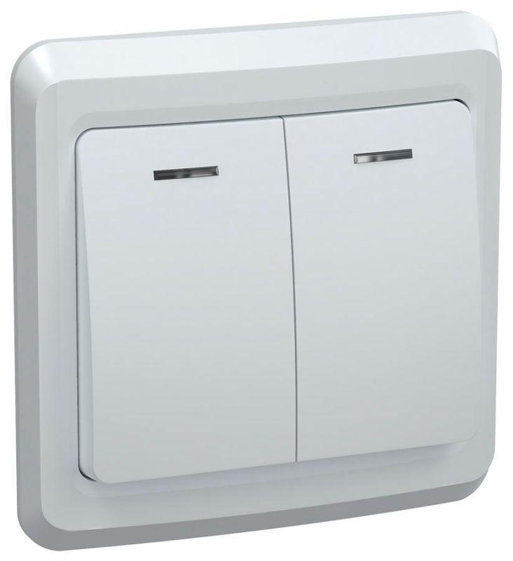 Выключатель 2-кл. СП W59 10А IP20 10AX с подсветкой в сборе бел. SchE VS510-251-18