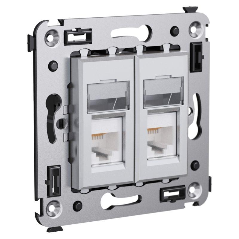 • Розетка 2-м RJ-45 СП кат.5e экранированная Avanti "Закаленная сталь" DKC 4404364