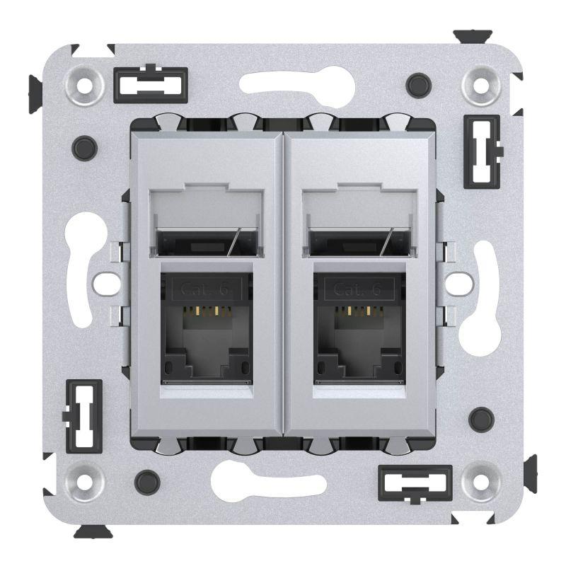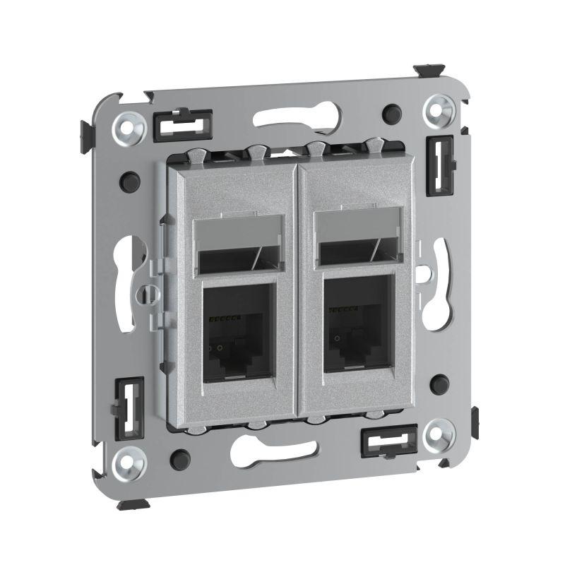 • Розетка компьютерная 2-м 2мод. RJ-45 СП кат.6 Avanti "Закаленная сталь" DKC 4404294