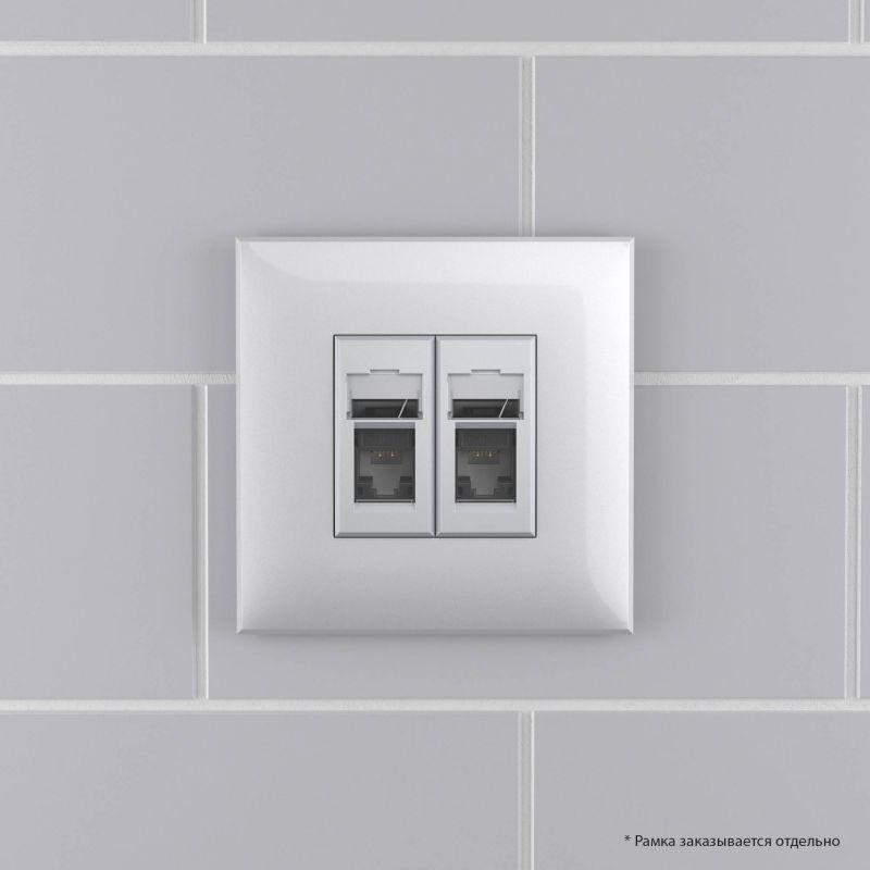 -Розетка компьютерная 2-м 2мод. RJ-45 СП кат.6 Avanti "Закаленная сталь" DKC 4404294