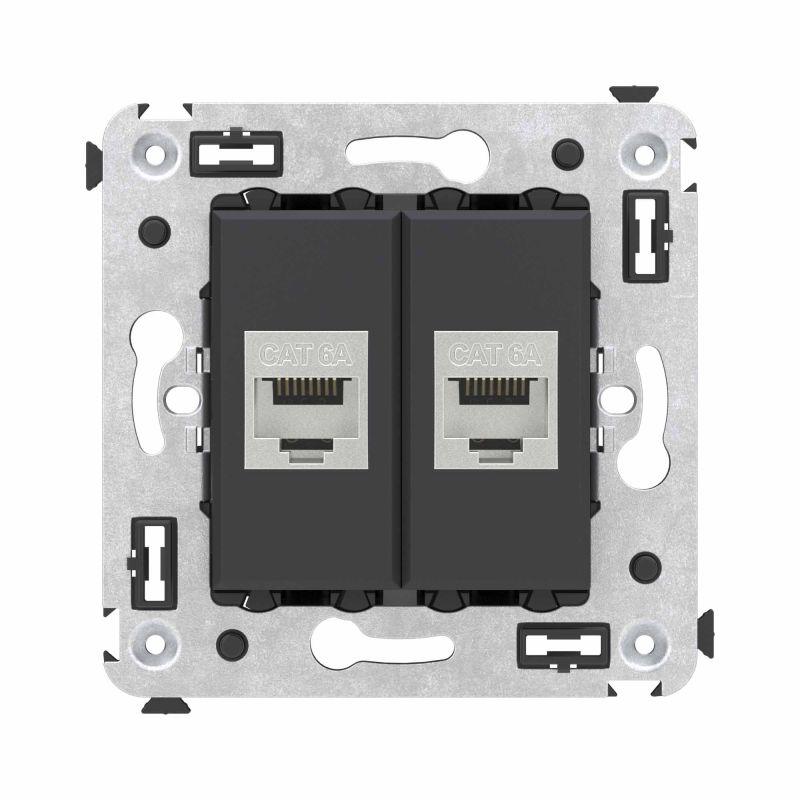 -Розетка компьютерная 2-м СП Avanti "Черный матовый" RJ45 кат.6A без шторок экранир. механизм DKC 4412774