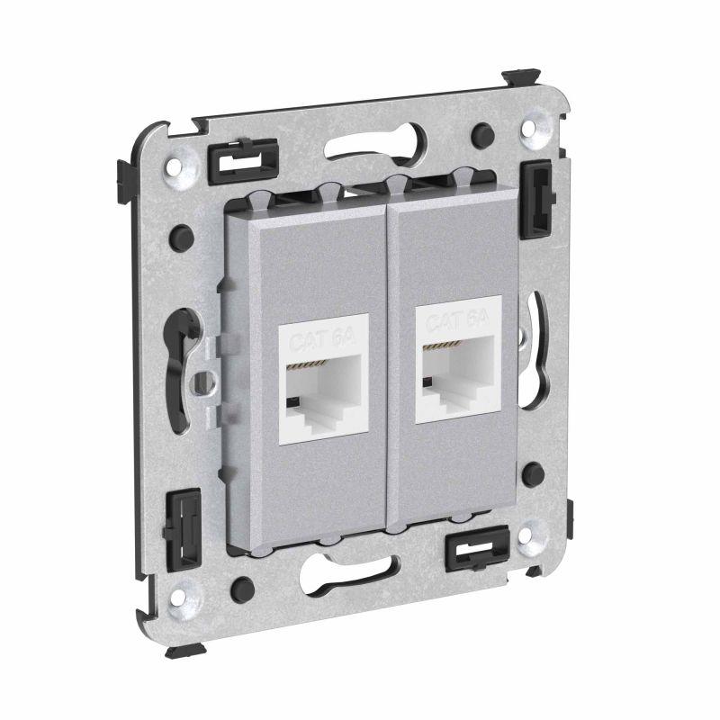 Розетка компьютерная 2-м СП Avanti "Закаленная сталь" RJ45 кат.6A без шторок механизм DKC 4404674