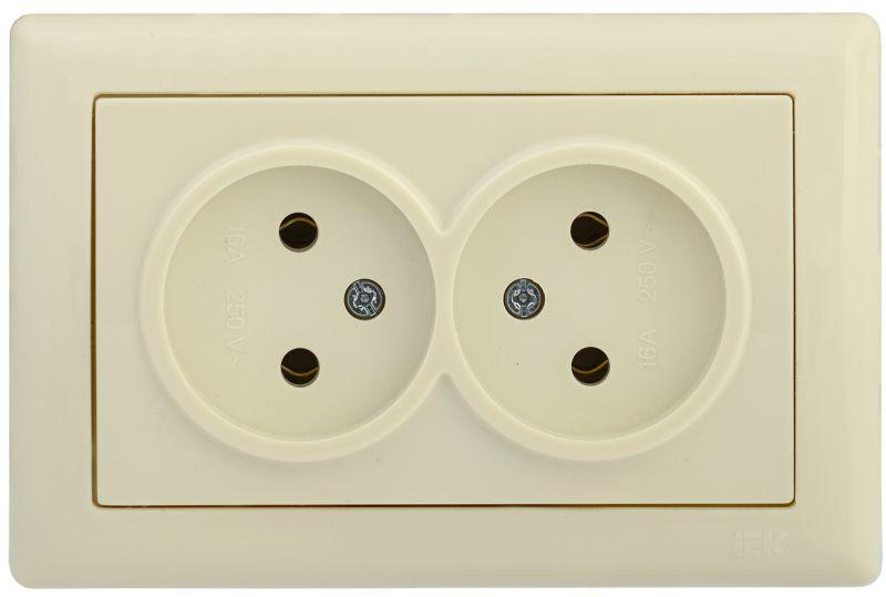 Розетка 2-м ОП GLORY РСш22-2-ХК 10А без заземл. защ. шторки крем. IEK ERH23-K33-10
