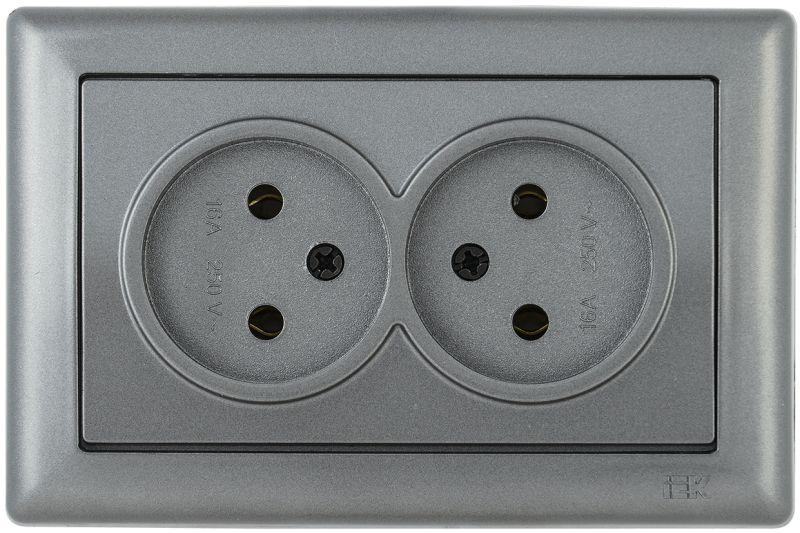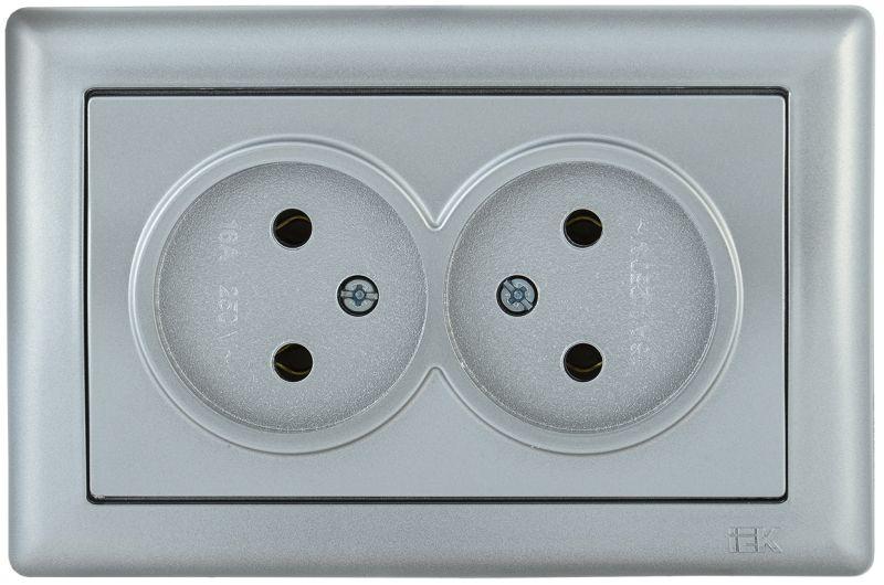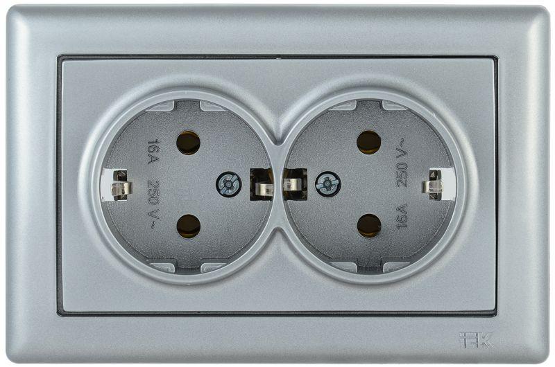 Механизм розетки 2-м СП Bolero РС21-1-0-БС 16А с заземл. серебр. IEK ERB21-K23-16