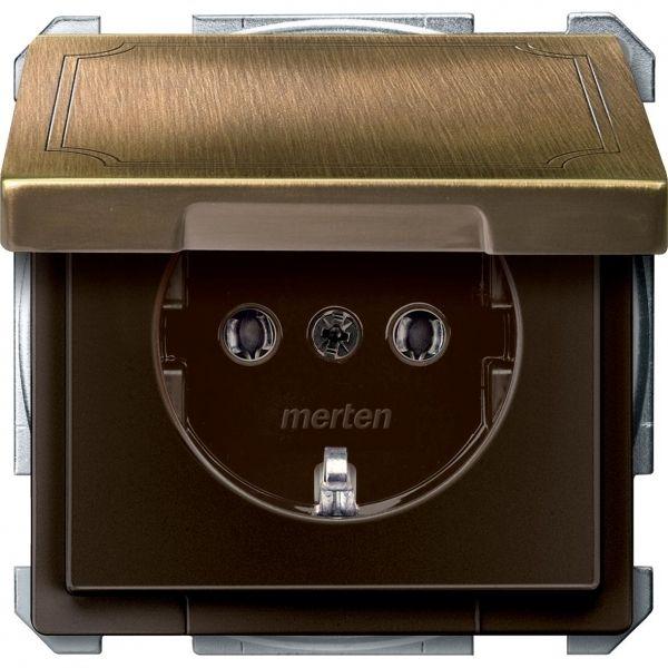 Механизм розетки 1-м СП Merten 16А IP20 с заземл. Schuko с крышкой QF SD античная латунь SchE MTN2311-4143