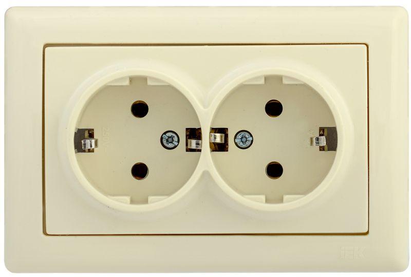 Розетка 2-м ОП GLORY РСш22-2-ХК 10А без заземл. защ. шторки крем. IEK ERH23-K33-10