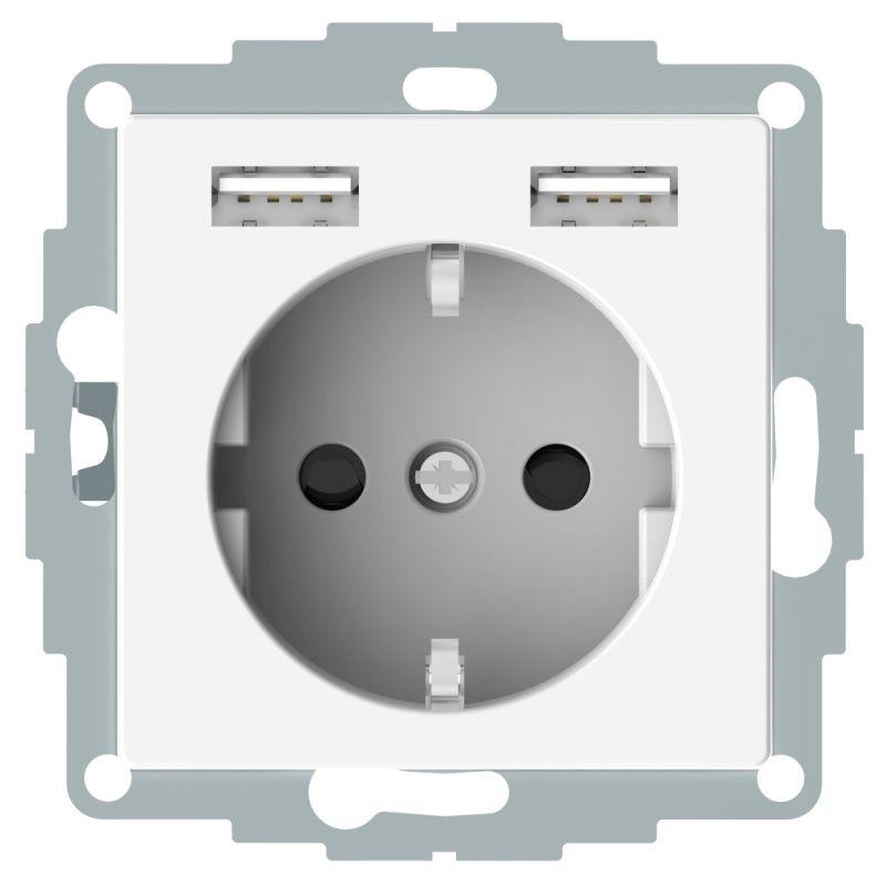 Розетка 1-м СП Merten SM 16А IP20 Schuko с 2-мя заряд. устройствами USB 2.4А механизм бел. SchE MTN2366-0319