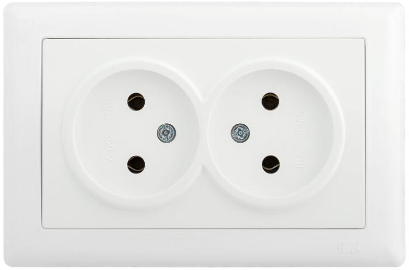 Розетка 2-м СП BRITE РС12-2-БрБ 10А в сборе без заземл. без защ. шторок бел. IEK BR-R20-10-K01-F