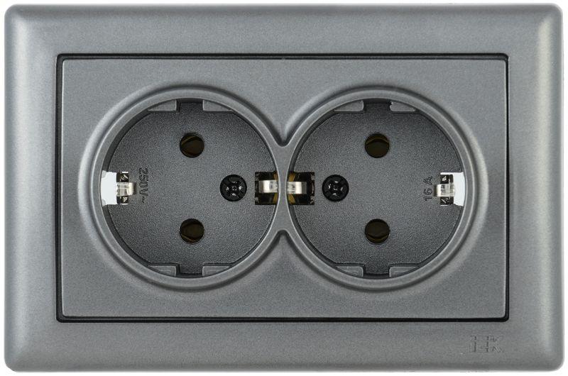 Механизм розетки 2-м СП Bolero РС21-1-0-БА 16А с заземл. антрацит IEK ERB21-K95-16