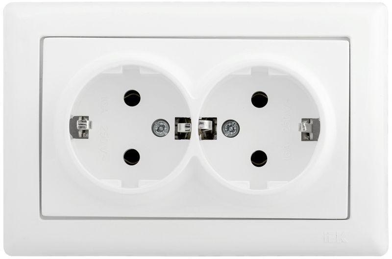 Розетка 2-м СП Bolero РС21-1-0-ББ 16А IP20 с заземл. бел. IEK ERB29-K01-16