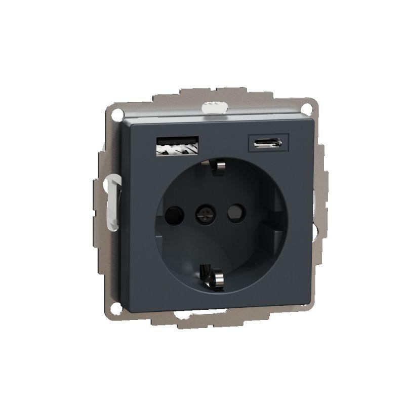Розетка 1-м СП 3мод. Merten SM 16А IP20 со встроен. зарядн. устройством USBА+C 3А антрацит SchE MTN2367-0414