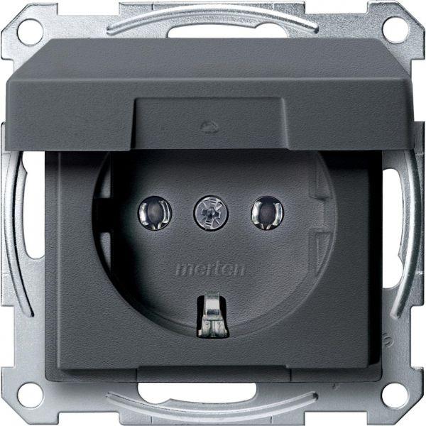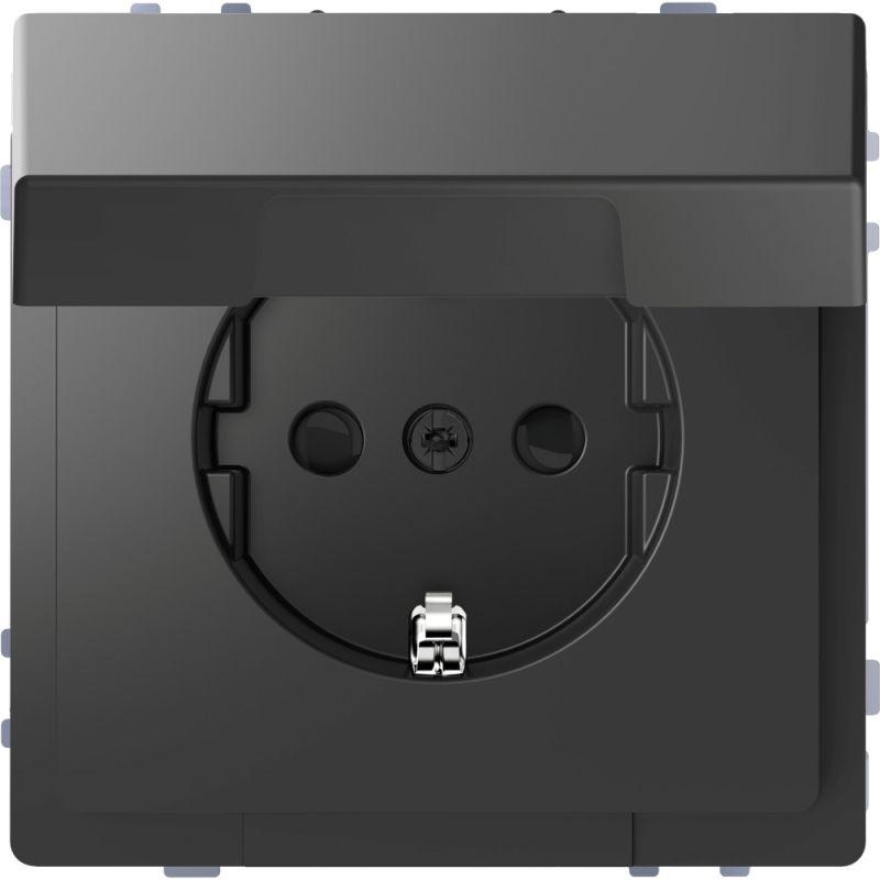 Механизм розетки 1-м СП Merten 16А IP20 с заземл. без защ. шторок с крышкой QF SM антрацит SchE MTN2311-0414