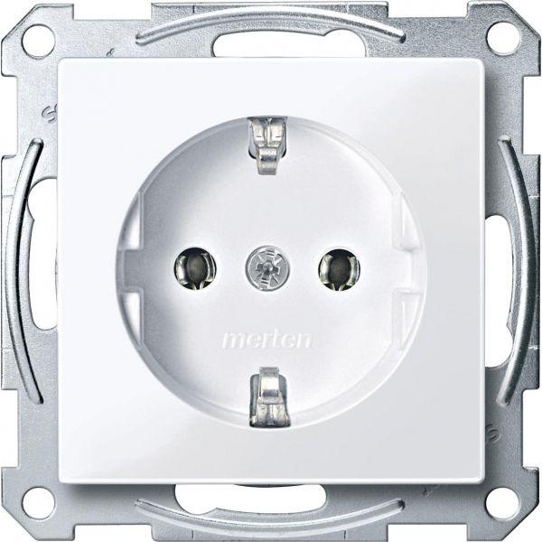 Механизм розетки 1-м СП Merten 16А IP20 с заземл. без защ. шторок QF SM активно бел. SchE MTN2301-0325