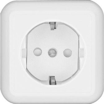 Розетка 1-м ОП Прима 16А IP20 250В с заземл. защ. шторки с изолир. пластиной бел. (розн. упак.) SchE RA16-003-1I-BI