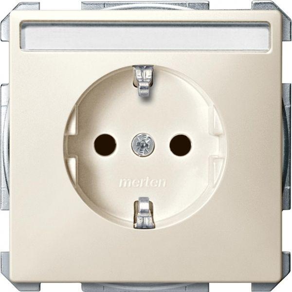 Механизм розетки 1-м СП Merten 16А IP20 с заземл. защ. шторки с полем для надписи SD QF беж. SchE MTN2302-4044