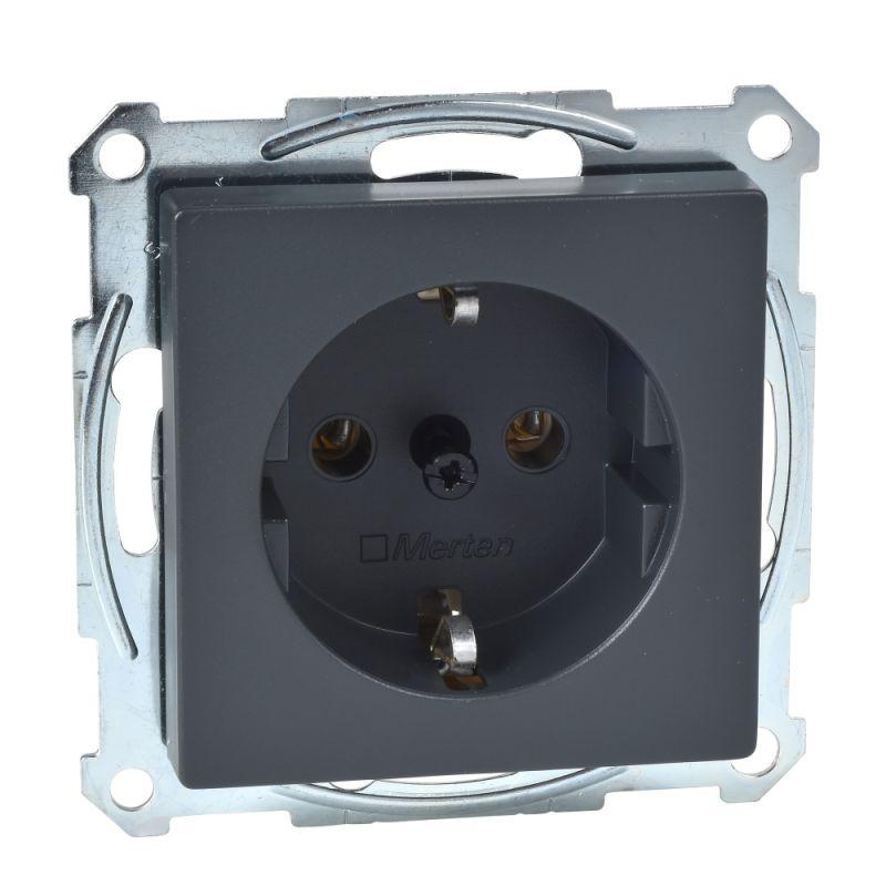 Розетка 1-м СП Merten 16А IP20 с заземл. защ. шторки SM механизм антрацит SchE MTN2401-0414