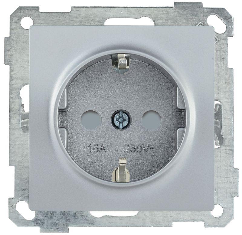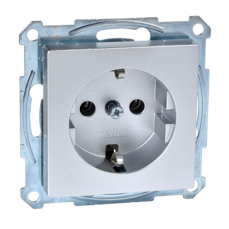 Механизм розетки 1-м СП Merten 16А IP20 с заземл. защ. шторки SM алюм. SchE MTN2401-0460