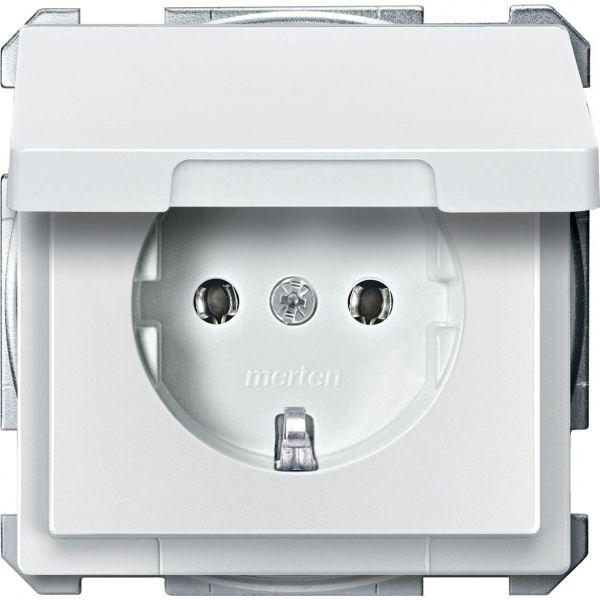 Механизм розетки 1-м СП Merten 16А IP20 с заземл. с крышкой QF SD полярн. бел. SchE MTN2311-4019