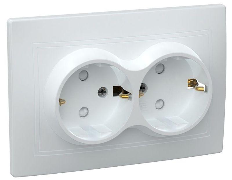 Розетка 2-м СП Кварта РСш12-3-КБ 16А IP20 с заземл. защ. шторки бел. GENERICA ERK21-K01-16-DM