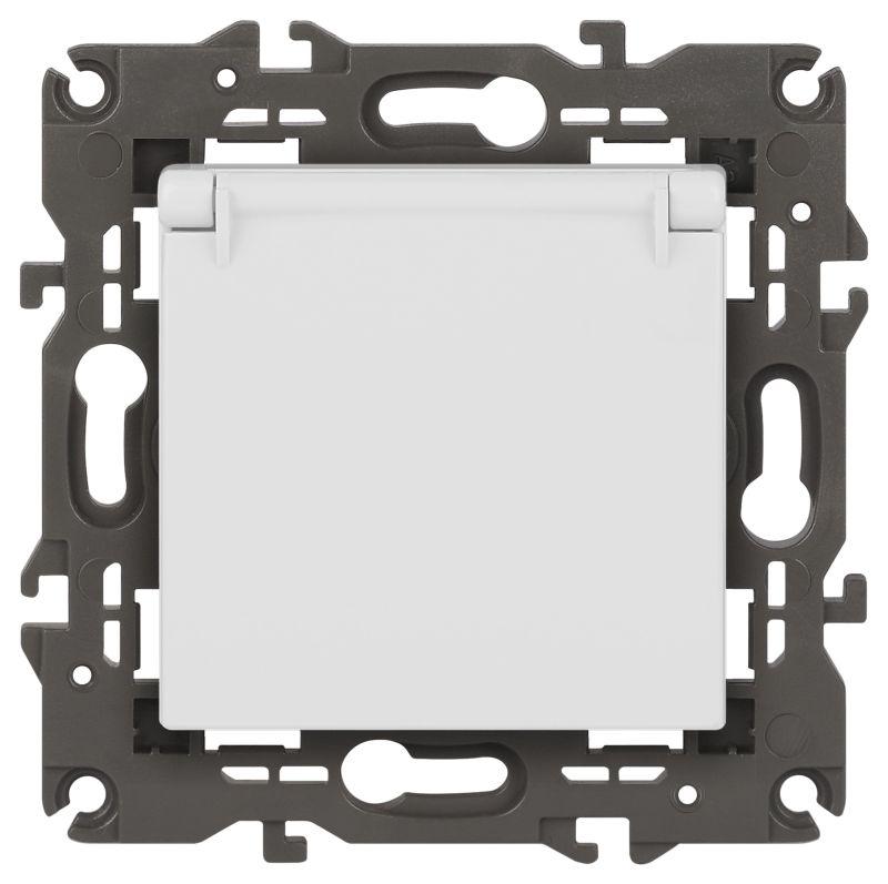 Розетка 1-м СП Эра Elegance 14-2103-01 16А IP20 16AX 250В 2P+E Schuko защ. шторки с крышкой бел. Эра Б0034278