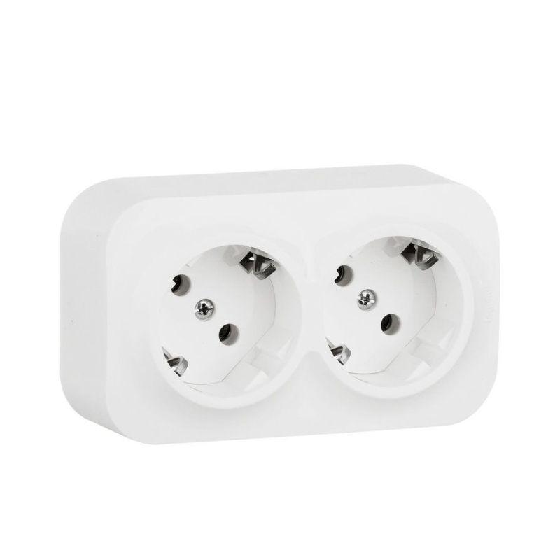 Розетка 2-м ОП Quteo 16А IP20 250В 2х2P+E с заземл. без защ. шторок бел. IEK 782233