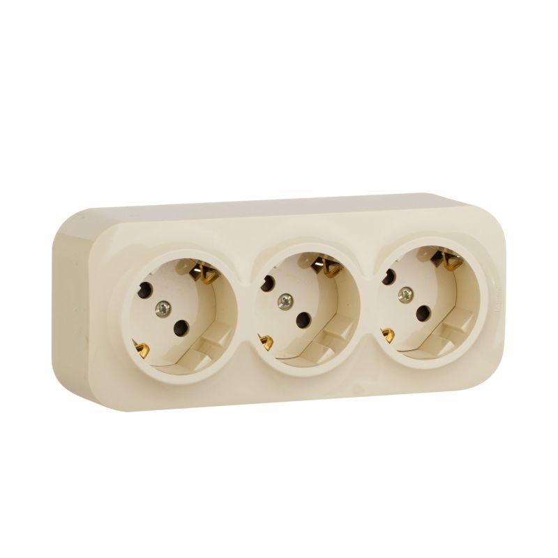 Розетка 3-м ОП Quteo 16А IP20 250В 3х2P+E с заземл. защ. шторки сл. кость IEK 782268