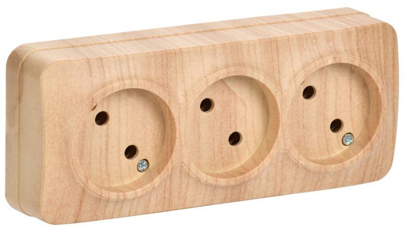 Розетка 3-м ОП GLORY РС23-2-ХС 10А без заземл. сосна IEK ERH30-K34-10